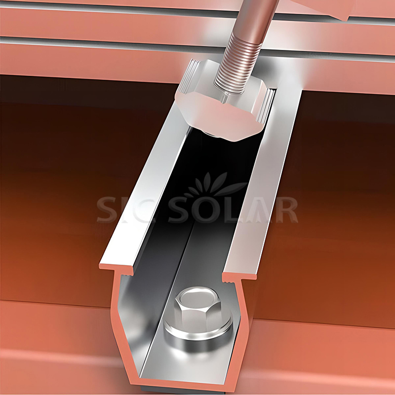 Fabriqué en alliage d'aluminium anodisé, ce mini rail solaire en aluminium résiste à la corrosion et dure longtemps. Sa conception courte utilise moins de matériaux et réduit les coûts de transport sans perdre en résistance. Il est idéal pour les toits métalliques trapézoïdaux et fonctionne bien avec les panneaux solaires courants.